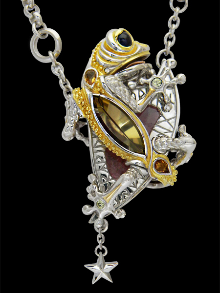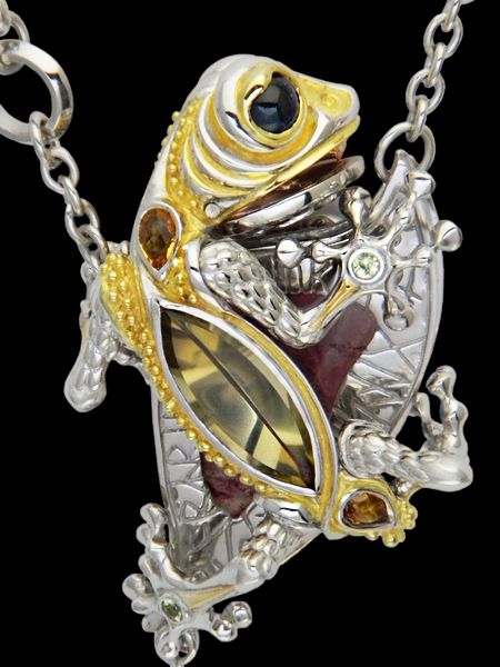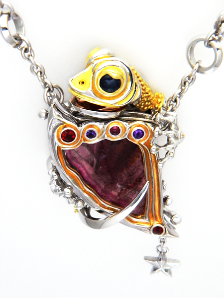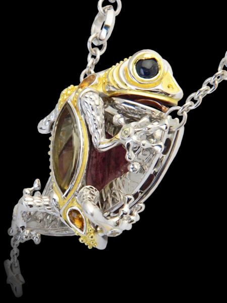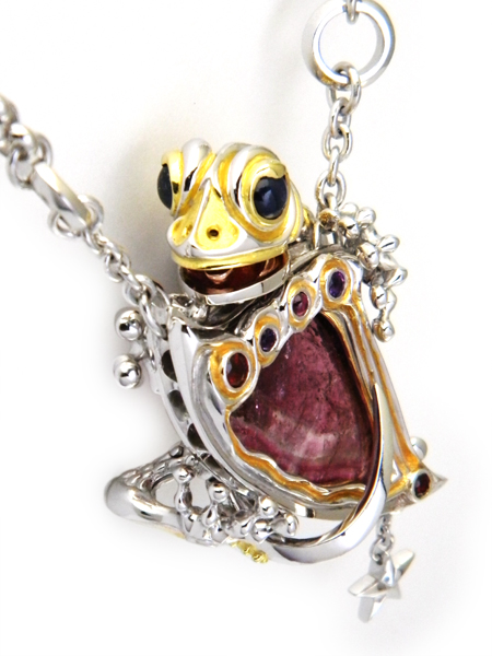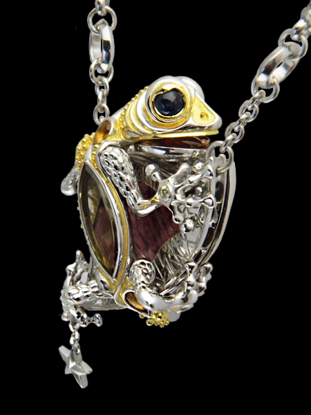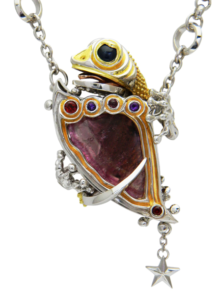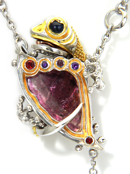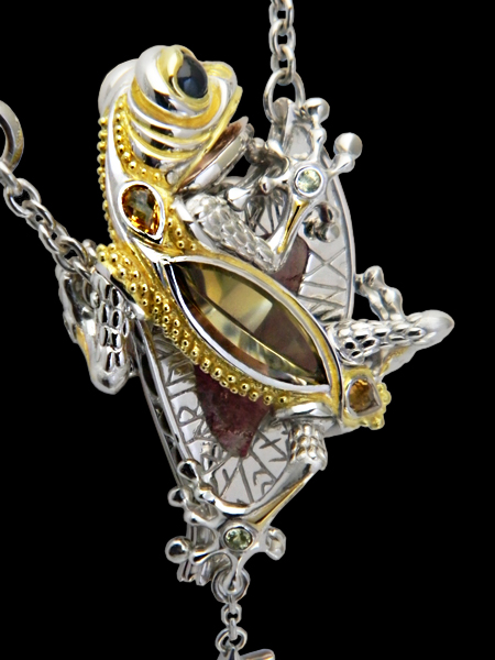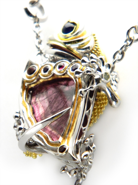 Necklace(reversible) / silver 925, tourmaline(liddicoatite), citrine, sapphire,