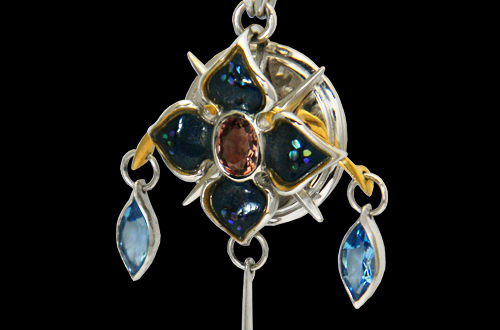 Pendant-top / silver 925, tourmaline, blue-topaz