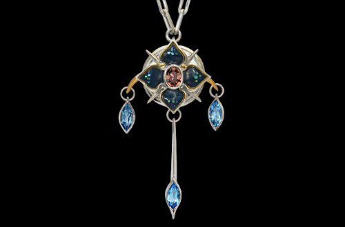 Pendant-top / silver 925, tourmaline, blue-topaz
