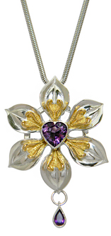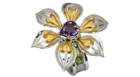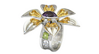 Pendant-top and Ring / silver 925, amethyst, peridot