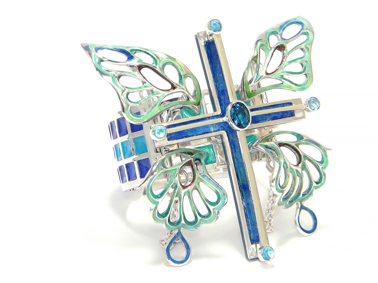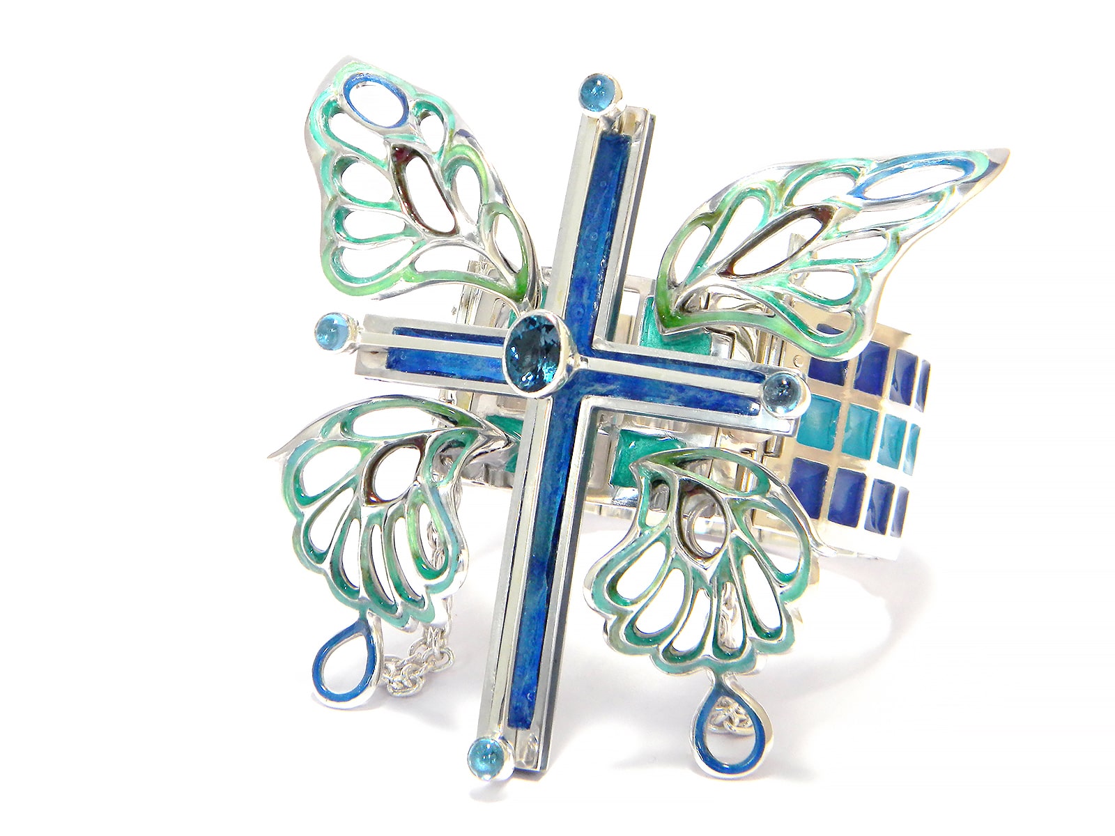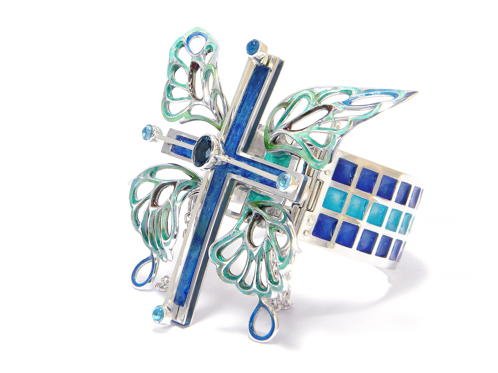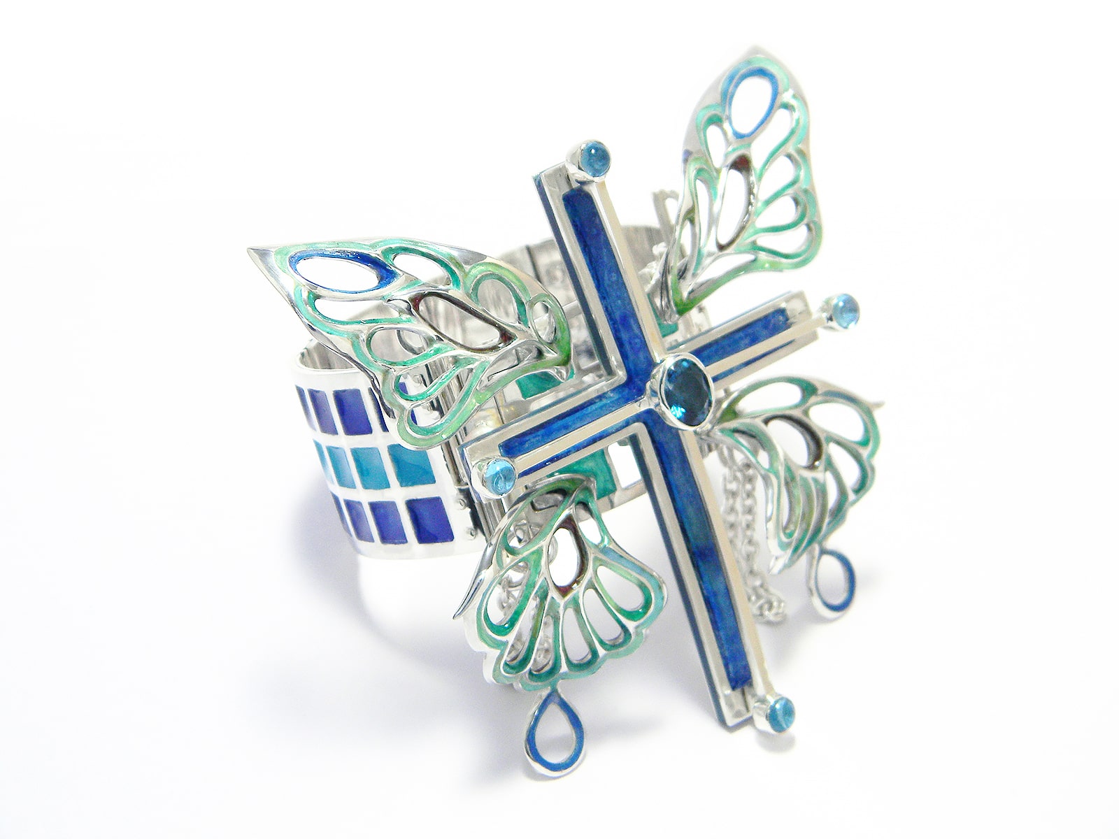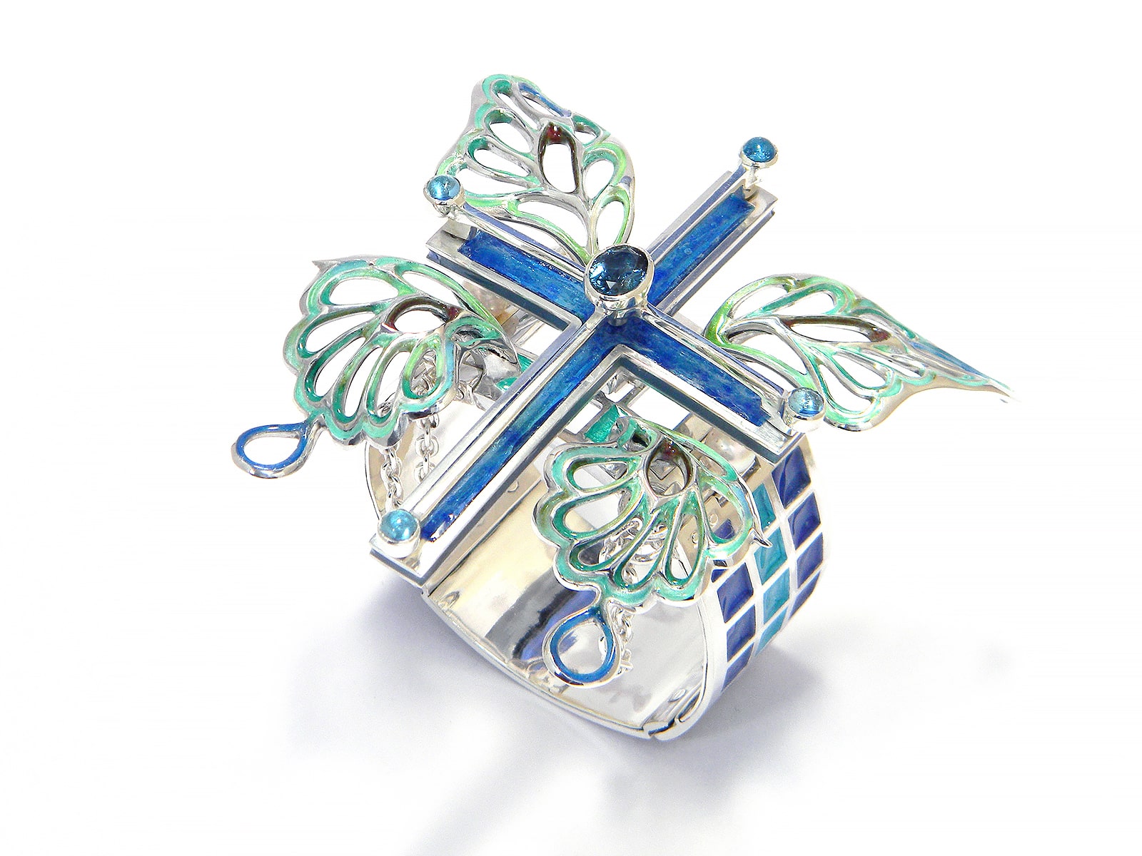 Bracelet / silver 925, 950, blue-topaz, cloisonne ware(七宝)