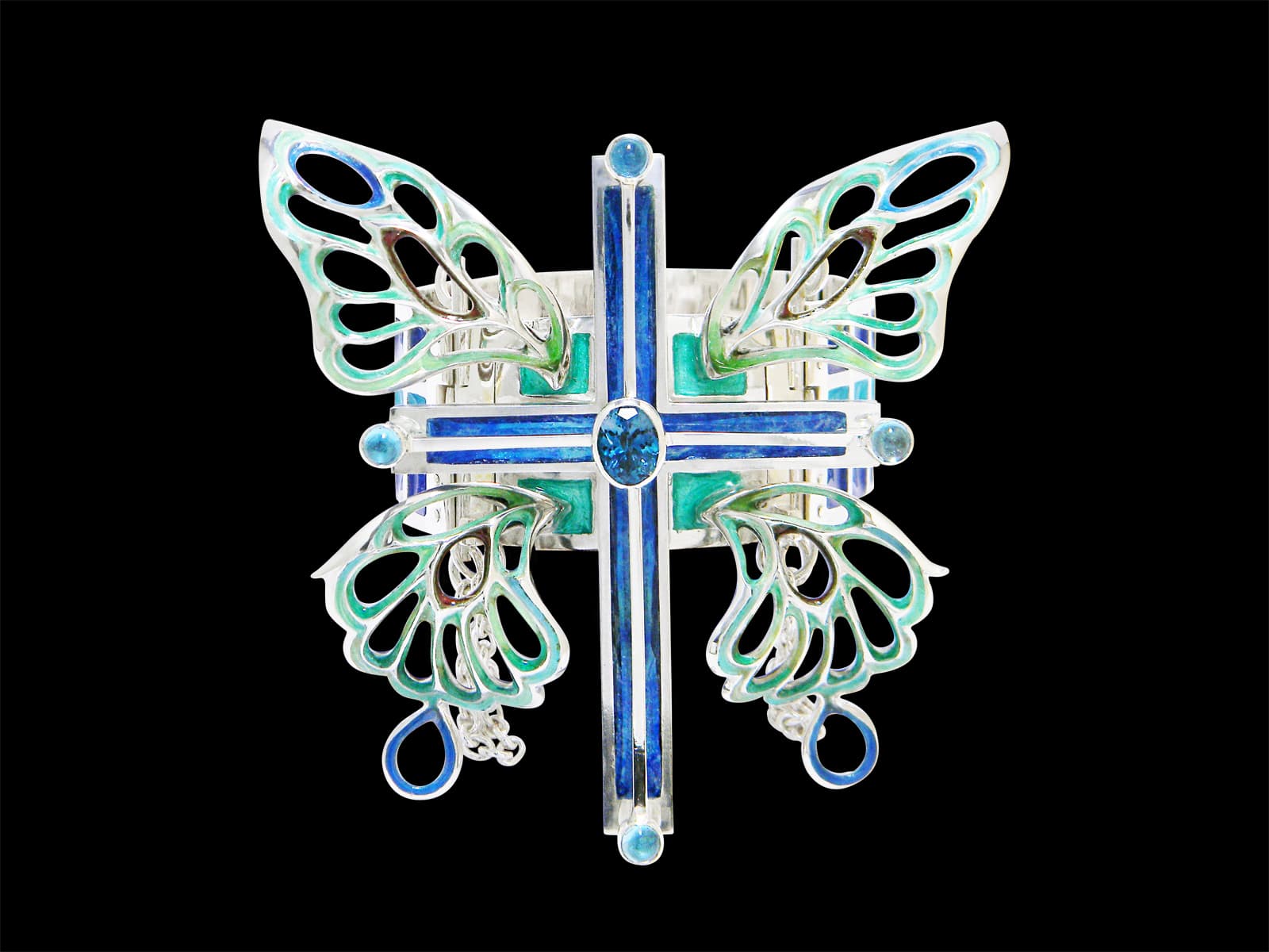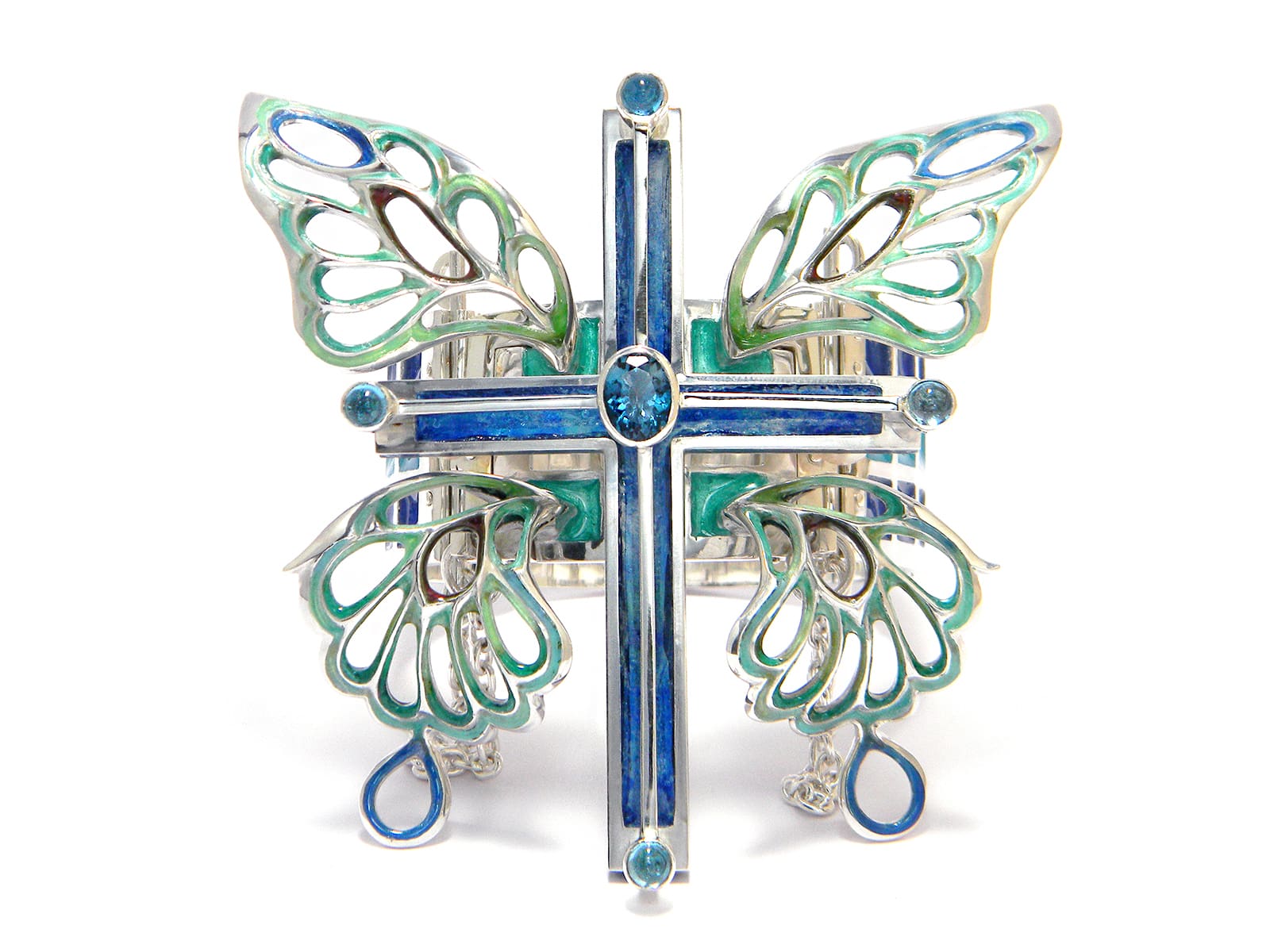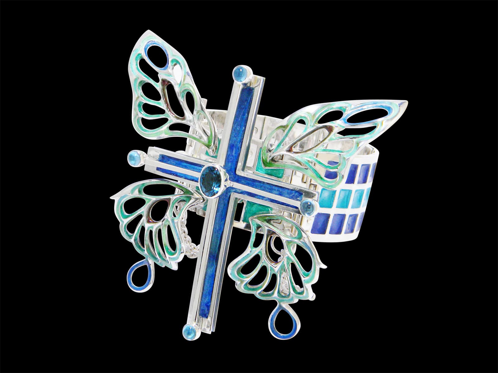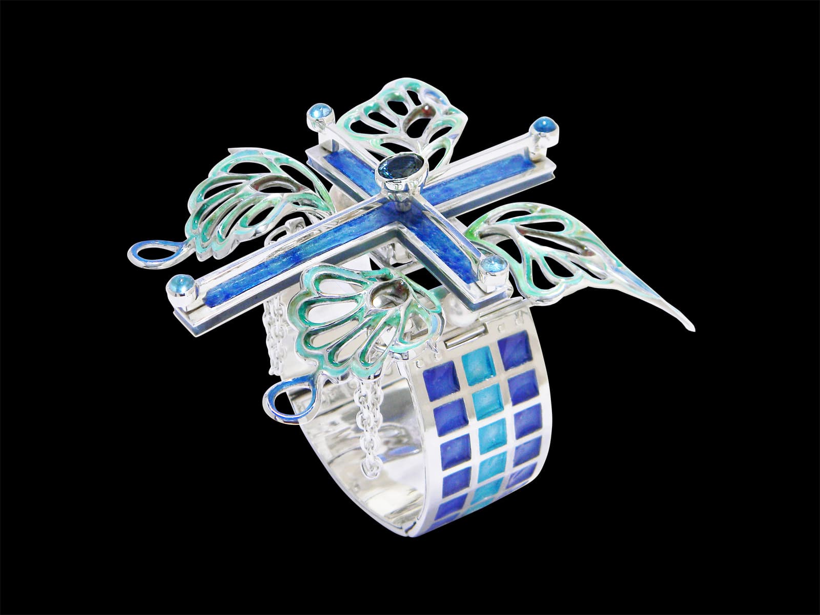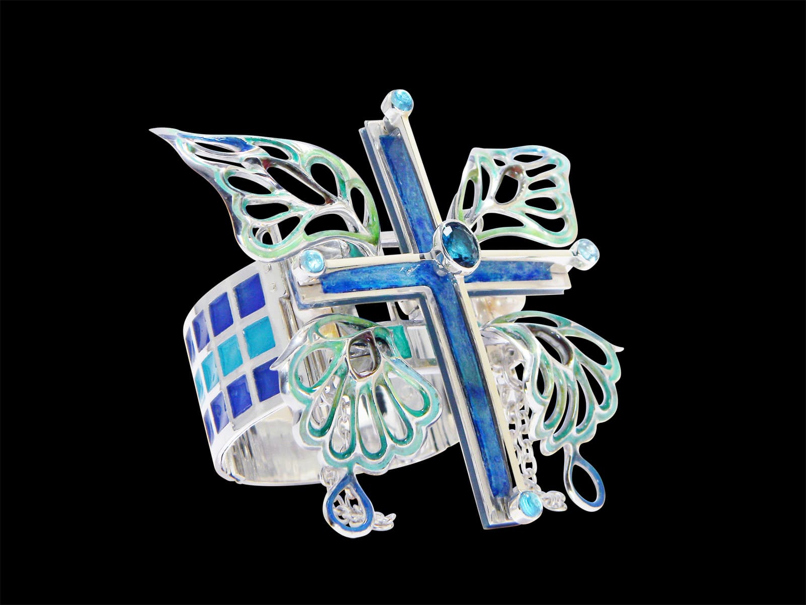 Bracelet / silver 925, 950, blue-topaz, cloisonne ware(七宝)